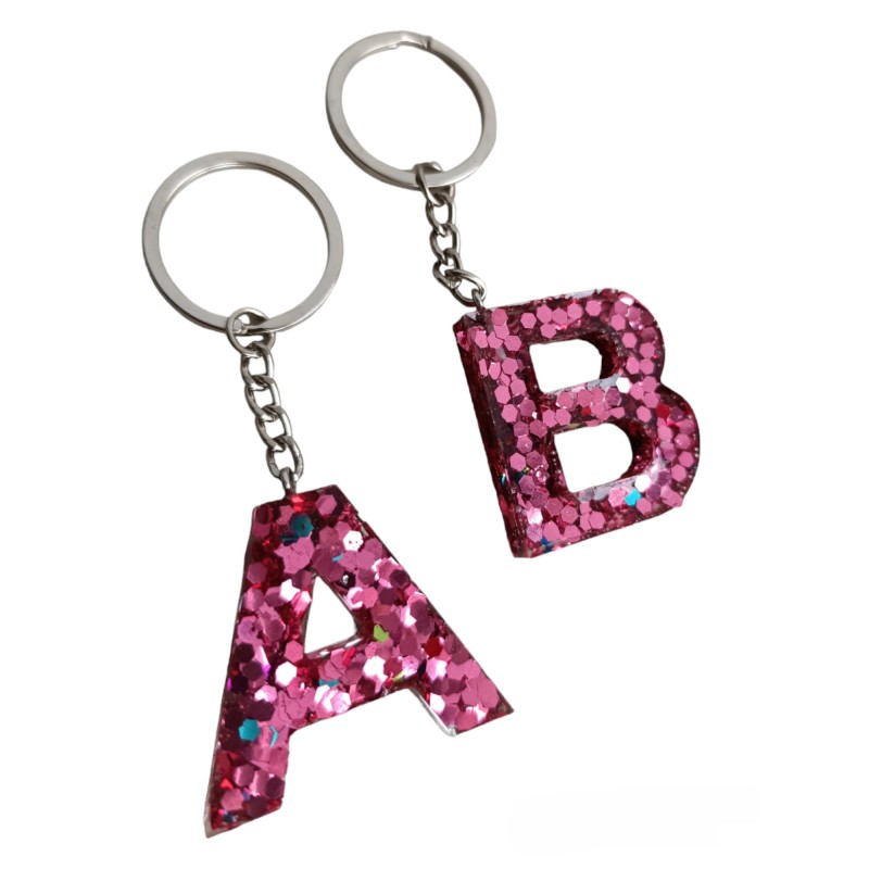 Μπρελόκ μονόγραμμα με γκλίτερ ροζ - σάπιο μήλο