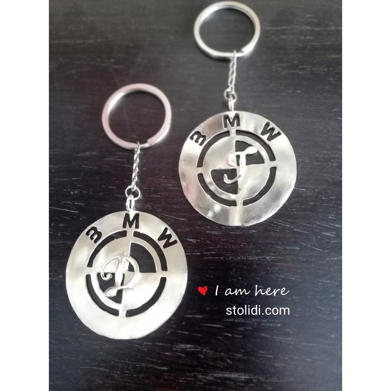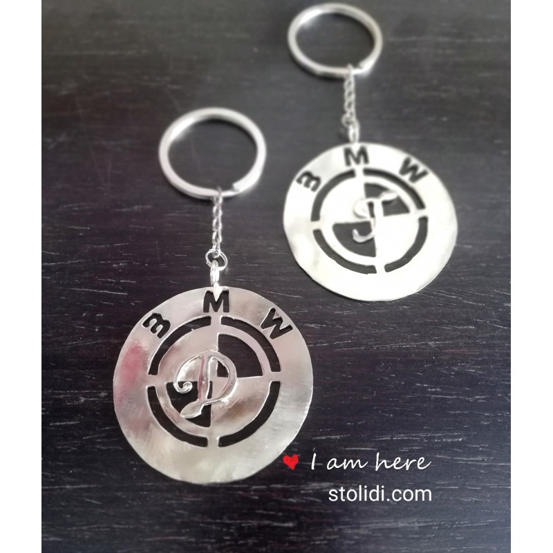 Χειροποίητο μπρελόκ με την μάρκα του αυτοκινήτου που θέλετε και το μονόγραμμα της επιλογής σας