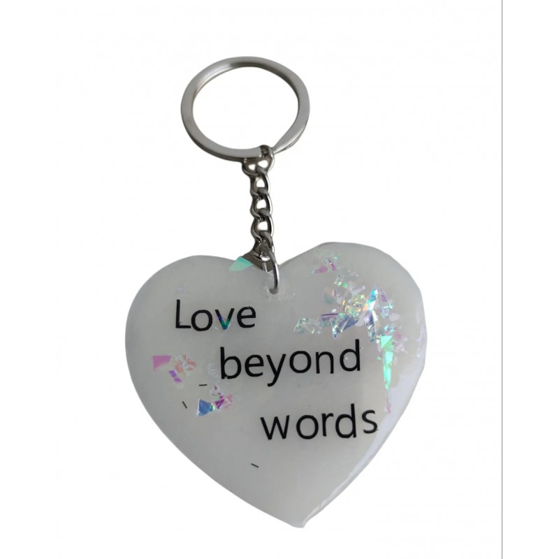 Μπρελόκ καρδιά χειροποίητο με λευκό σμάλτο γκλίτερ και μήνυμα. Διάσταση 5 εκ