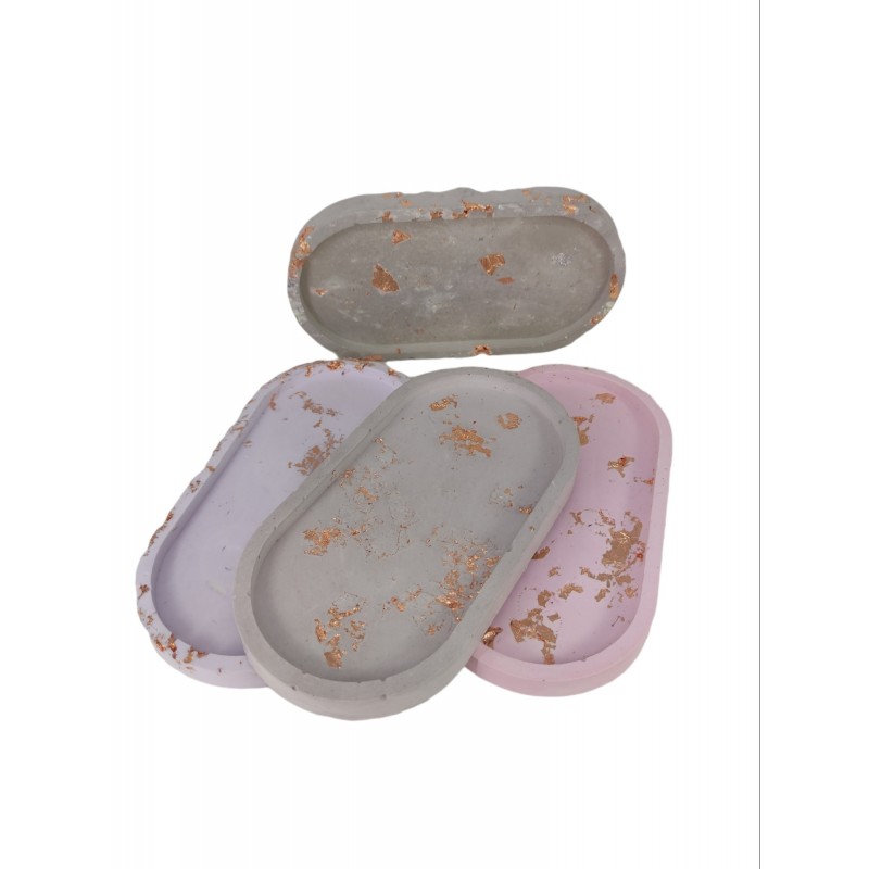 Χειροποίητα δισκάκια από σκόνη πορσελάνης με φύλλα χρυσούΜπορείς να τα χρησιμοποιήσεις για να βάλεις τα κοσμήματά σου, τα αρωματικά κεριά σου και ότι άλλο θέλειςΔιάσταση 18Χ10 εκατοστά
