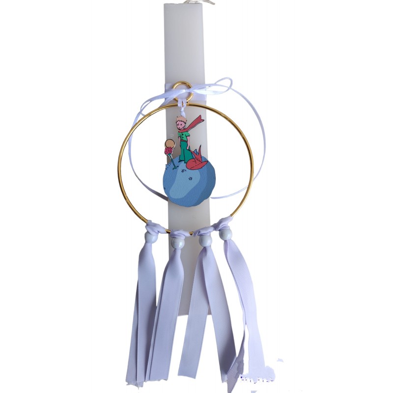 Ετικέτες: Λαμπάδα με τον μικρό πρίγκιπα μέσα σε κύκλο Αφαιρείται και μπορεί να στολιστεί στο παιδικό δωμάτιο Ύψος λαμπάδας 30 εκ