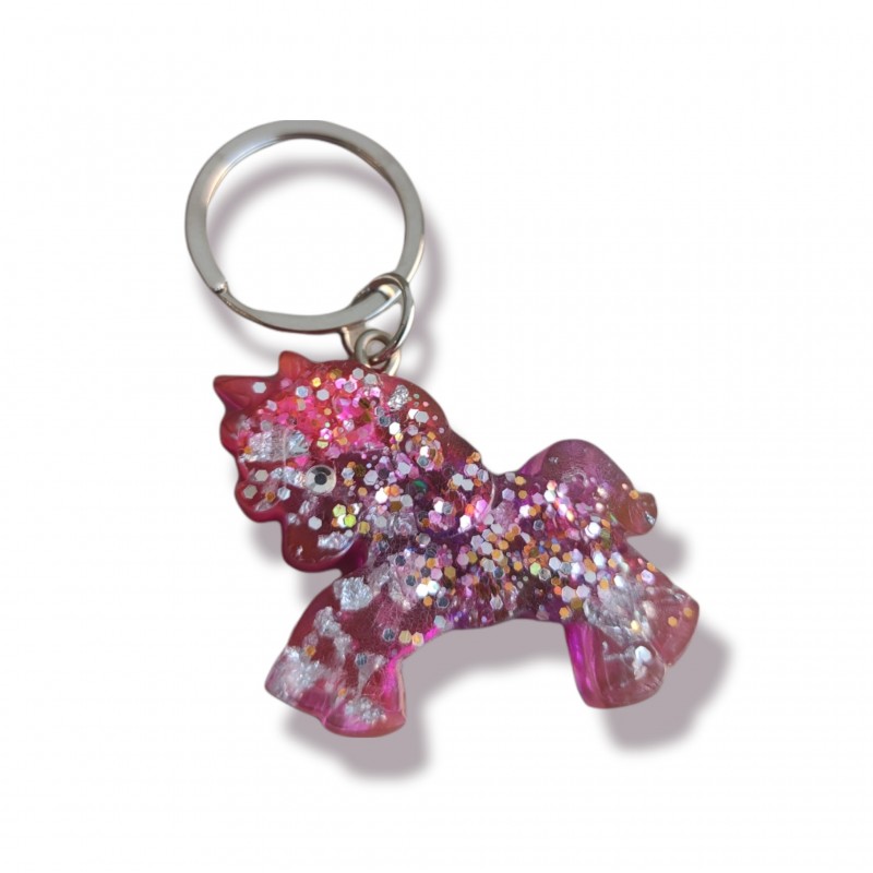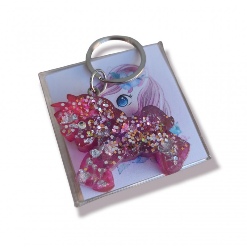 Μπρελοκ μονόκερος από υγρό γυαλί σε ροζ αποχρώσεις και γκλίτερ
