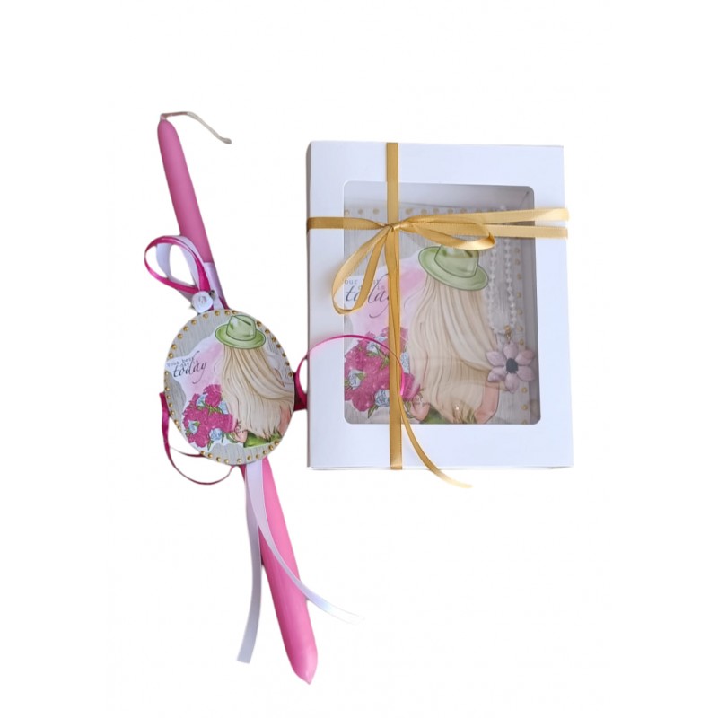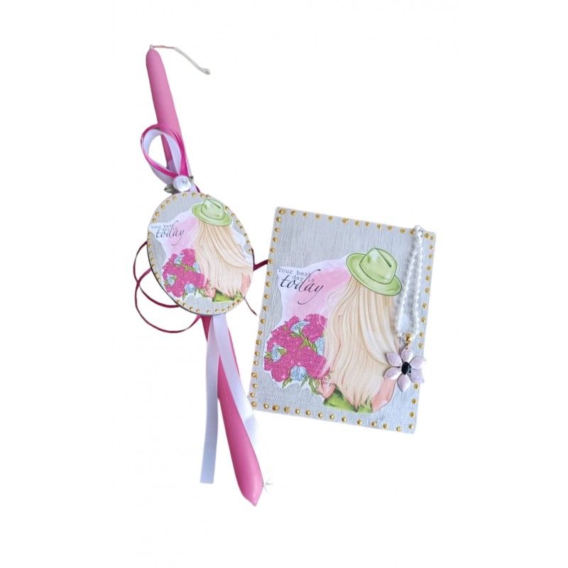 Ετικέτες: Πασχαλινό πακέτο δώρου που περιλαμβάνει χειροποίητο κόσμημα Καδράκι με λογότυπο " your best day is today " Και αντίστοιχη λαμπάδα
