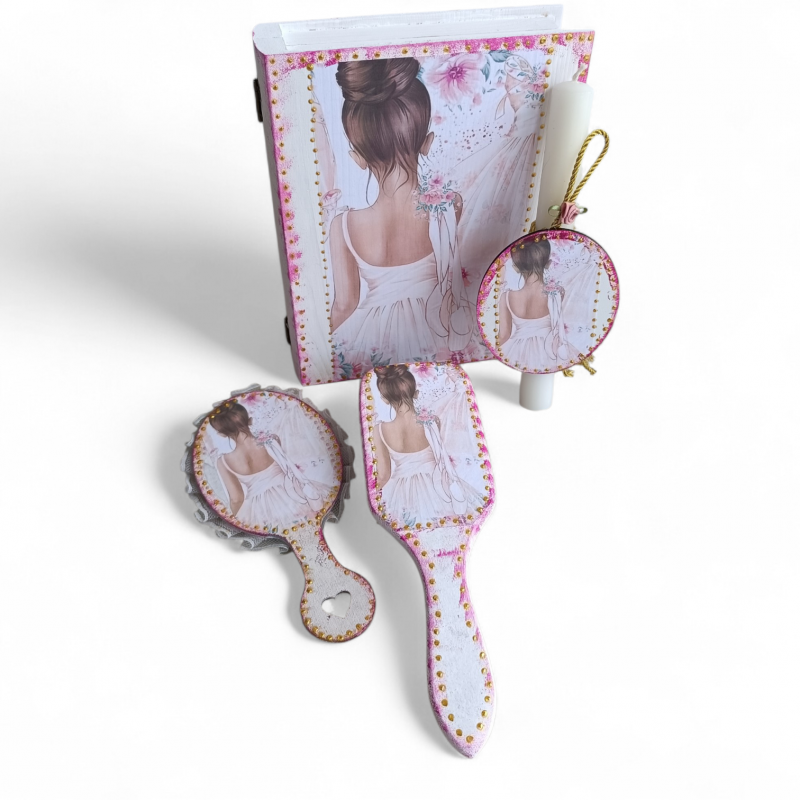 Πασχαλινό σετ που περιλαμβάνει λαμπάδα, κουτί αποθήκευσης, χτένα, καθρέφτη και λαμπάδα με θέμα την μπαλαρίνα