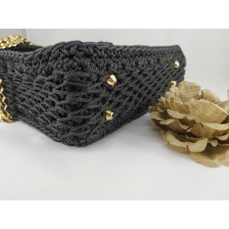 Χειροποίητη πλεκτή τσάντα σε γκρι χρώμα