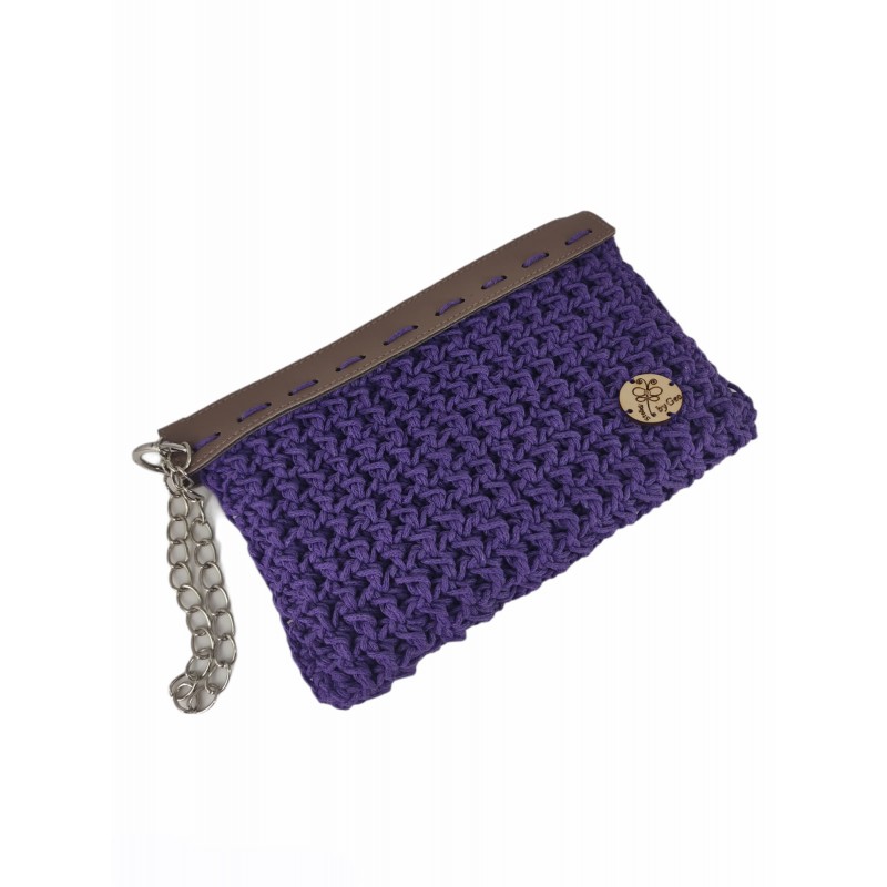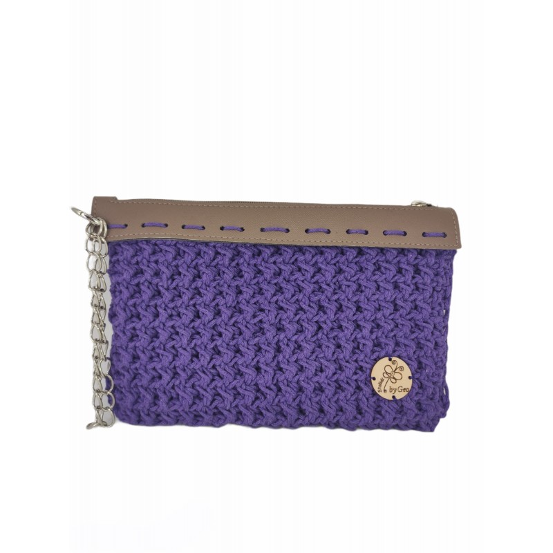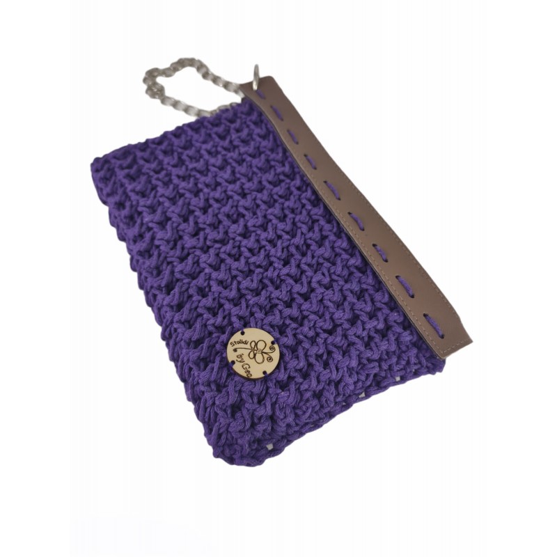 Πλεκτό χειροποίητο τσαντάκι χειρός σε μωβ χρώμα