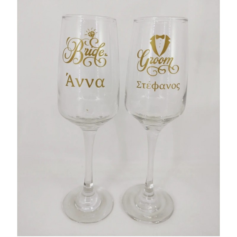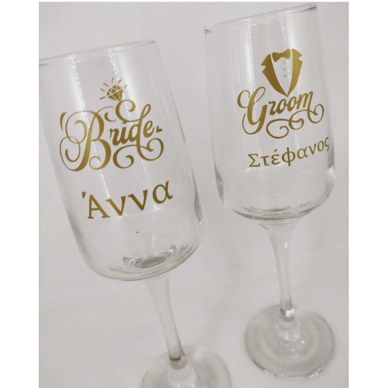 Ποτήρια σαμπάνιας bride & Groom με τα ονόματα σας