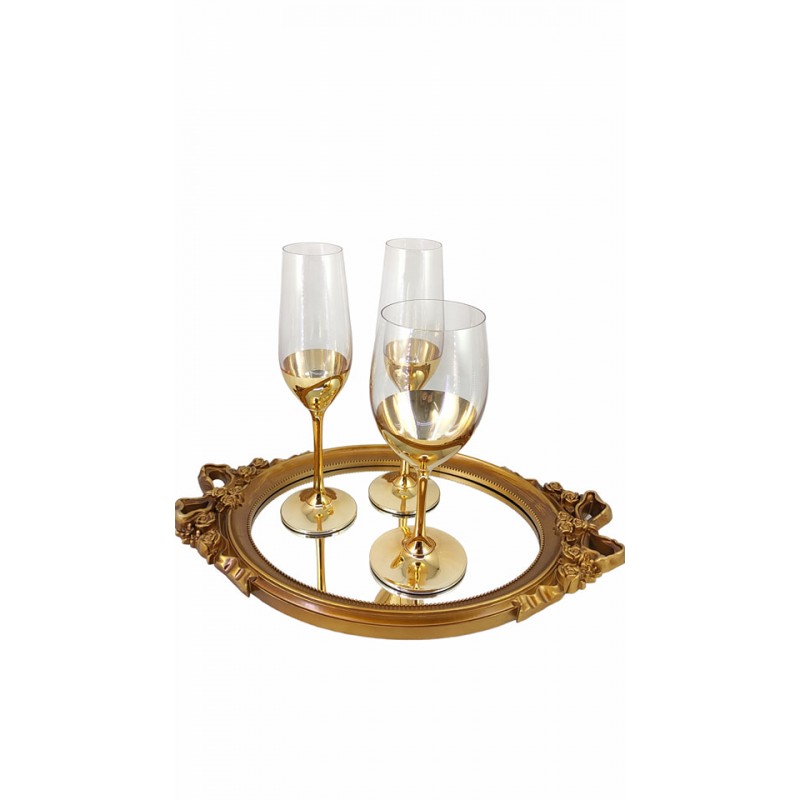 Σετ γάμου που περιλαμβάνει, ποτήρια σαμπάνιας, ποτήρι κρασιού και δίσκο που ο πάτος του είναι καθρέφτης