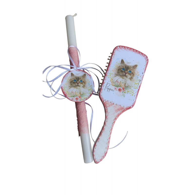 Λαμπάδα και χτένα με θέμα το γατάκι
