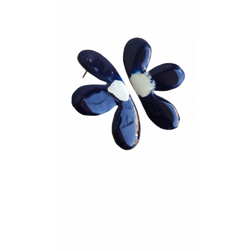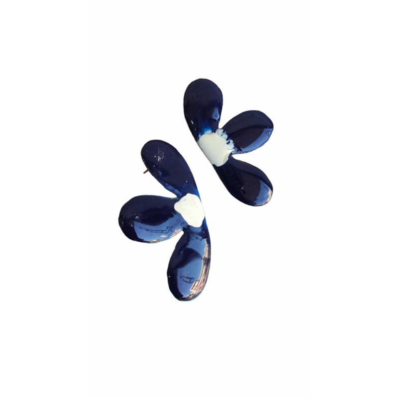 Ετικέτες: Σκουλαρίκια χειροποίητα από μέταλλο ορείχαλκου, μαργαρίτα σε δύο κομμάτια, βαμμένα σε μπλε σκούρο με λευκό Διάσταση 5, 5Χ3 cm Δεν δημιουργούν αλλεργίες