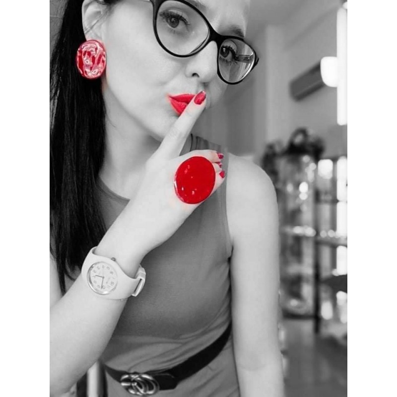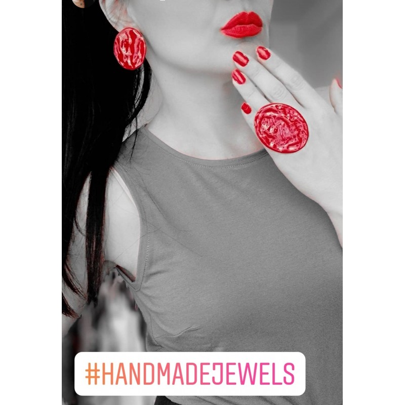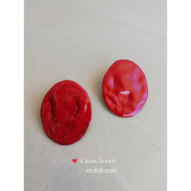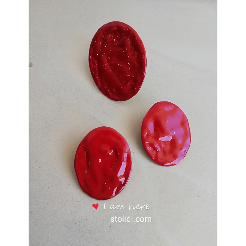 Χειροποίητο σετ από μέταλλο ορειχάλκου βαμμένο με σμάλτο σε κόκκινο χρώμα