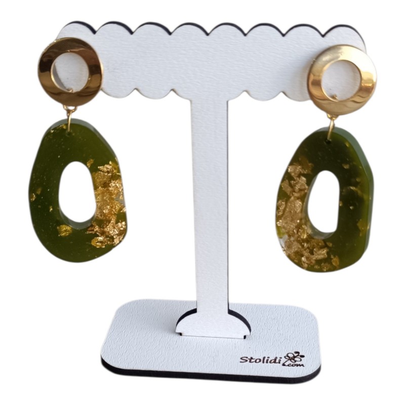 Χειροποίητα σκουλαρίκια από ρητίνη σε λαδί με χρυσό χρώμα