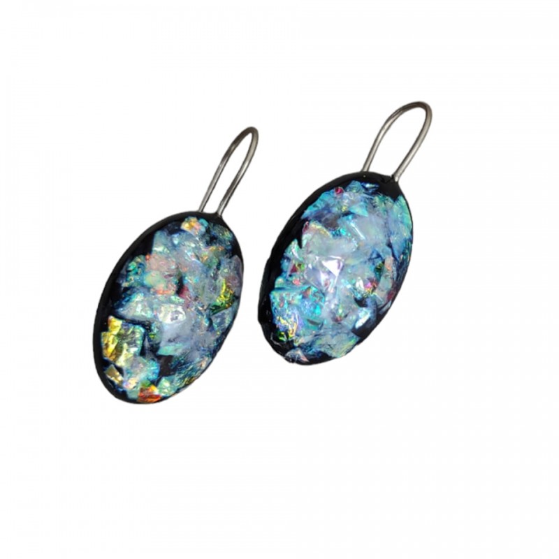 Σκουλαρίκια χειροποίητα οβάλ από υγρό γυαλί ,μαύρο χρώμα