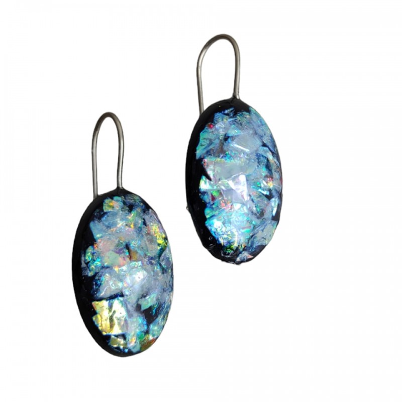 Σκουλαρίκια χειροποίητα οβαλ από υγρό γυαλί ,μαύρο χρώμα