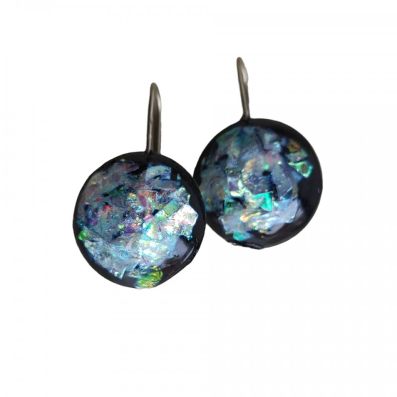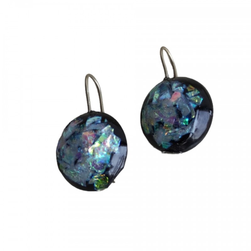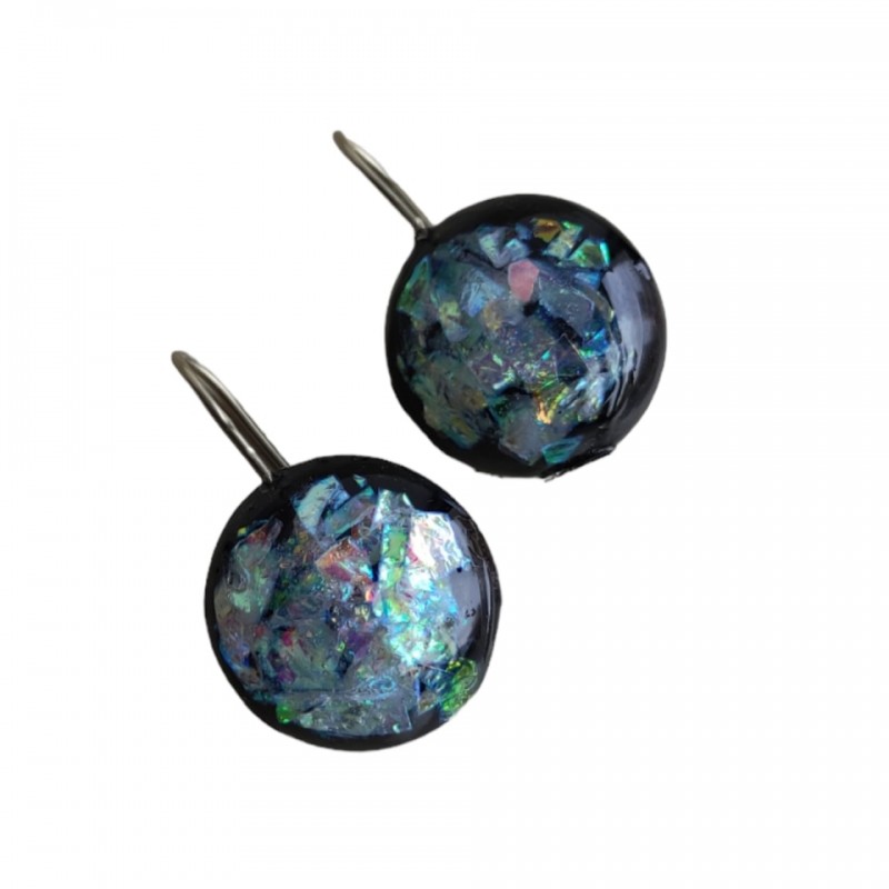 Σκουλαρίκια χειροποίητα στρόγγυλά από υγρό γυαλί ,μαύρο χρώμα