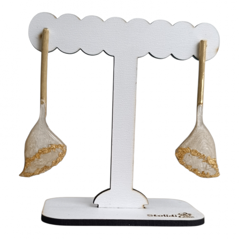 Χειροποίητα σκουλαρίκια σε σχέδιο κρίνου, κατασκευασμένα από μέταλλο ορείχαλκου και διακοσμημένα με σμάλτο και ρητίνη.