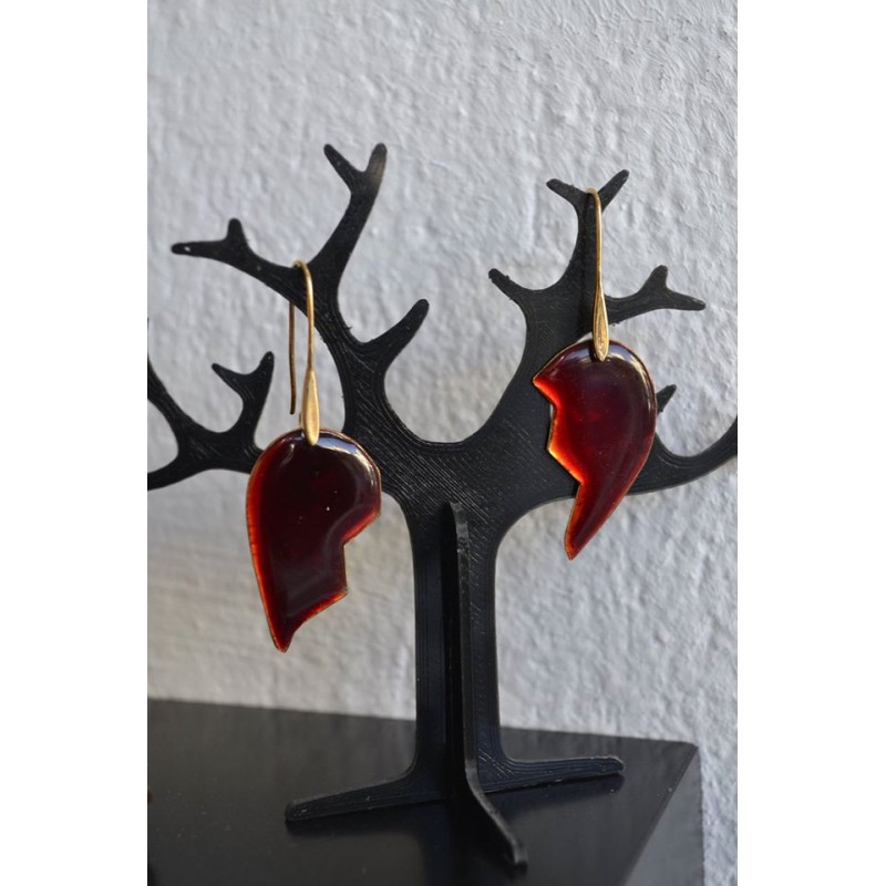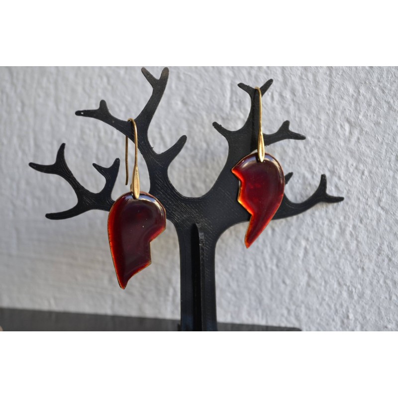 Σκουλαρίκια καρδιά από ορείχαλκο κόκκινη, σε δύο κομμάτια