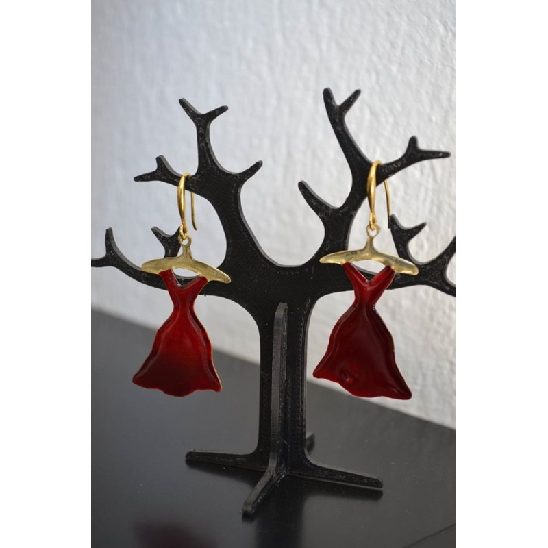 Σκουλαρίκια χειροποίητα από ορείχαλκο με φόρεμα βαμμένο σε κόκκινο χρώμα