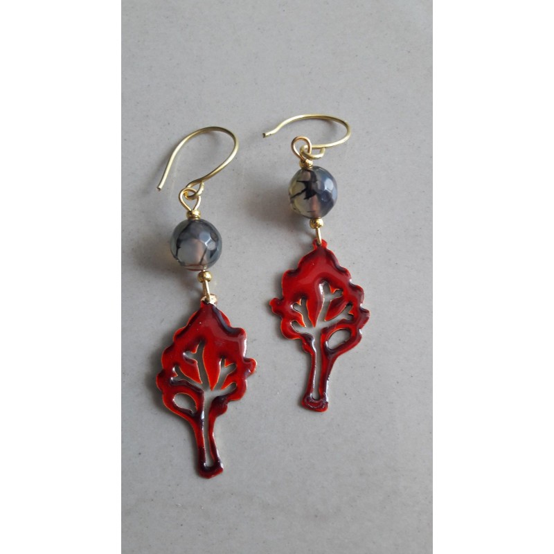 Χειροποίητα σκουλαρίκια " Το δέντρο της ζωής" από ορείχαλκο βαμμένο με σμάλτο σε κόκκινο χρώμα
