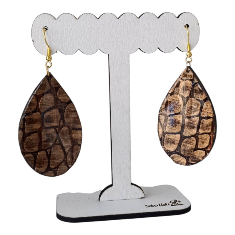 Χειροποίητα σκουλαρίκια δάκρυ με καφέ τεχνόδερμα