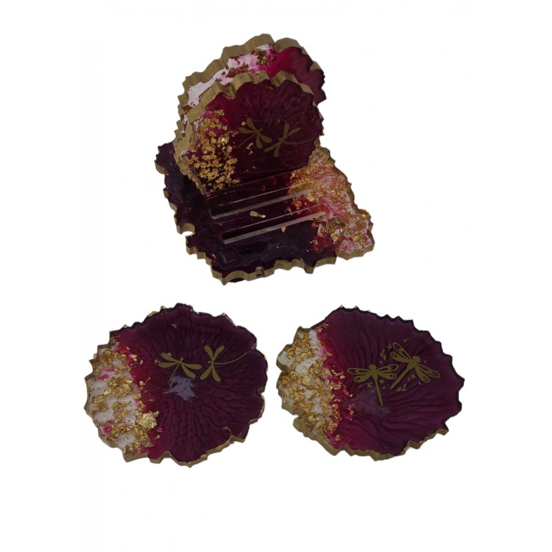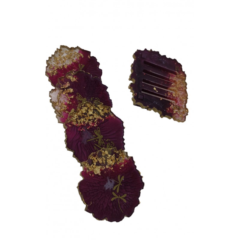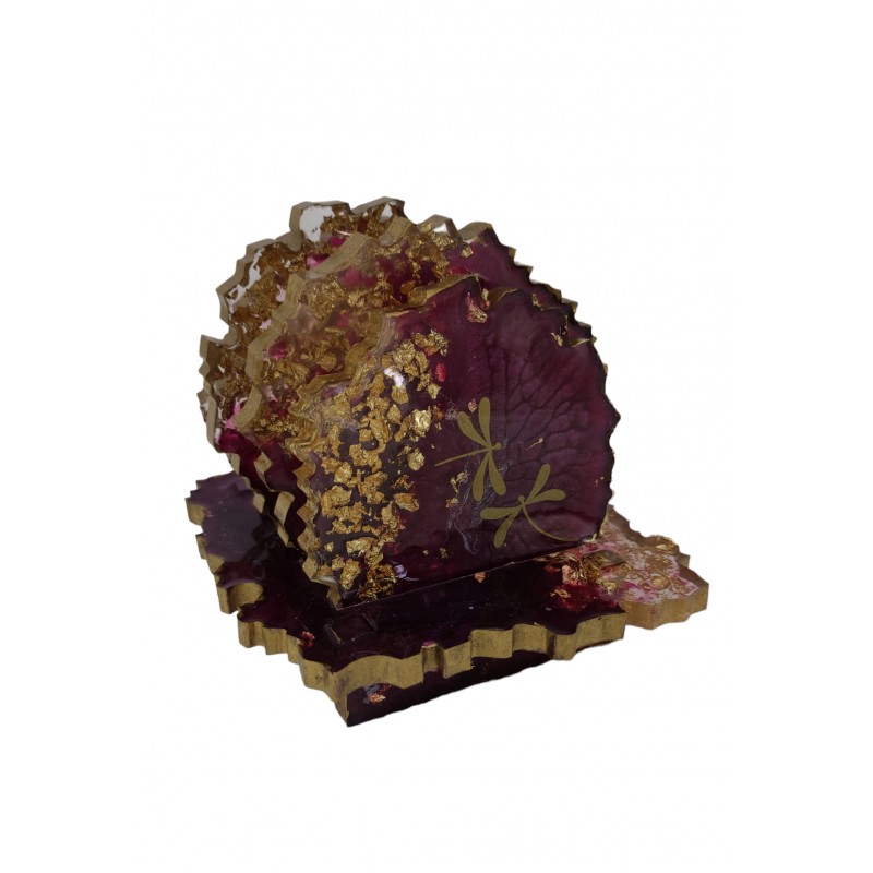 Χειροποίητα σουβέρ με φύλλα χρυσού και χρώμα του κόκκινου κρασιού