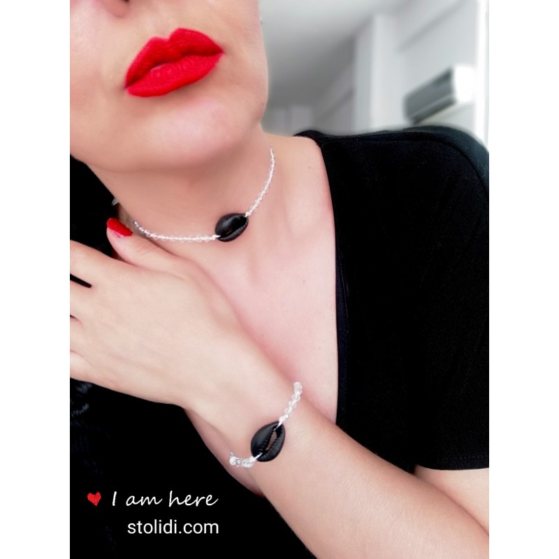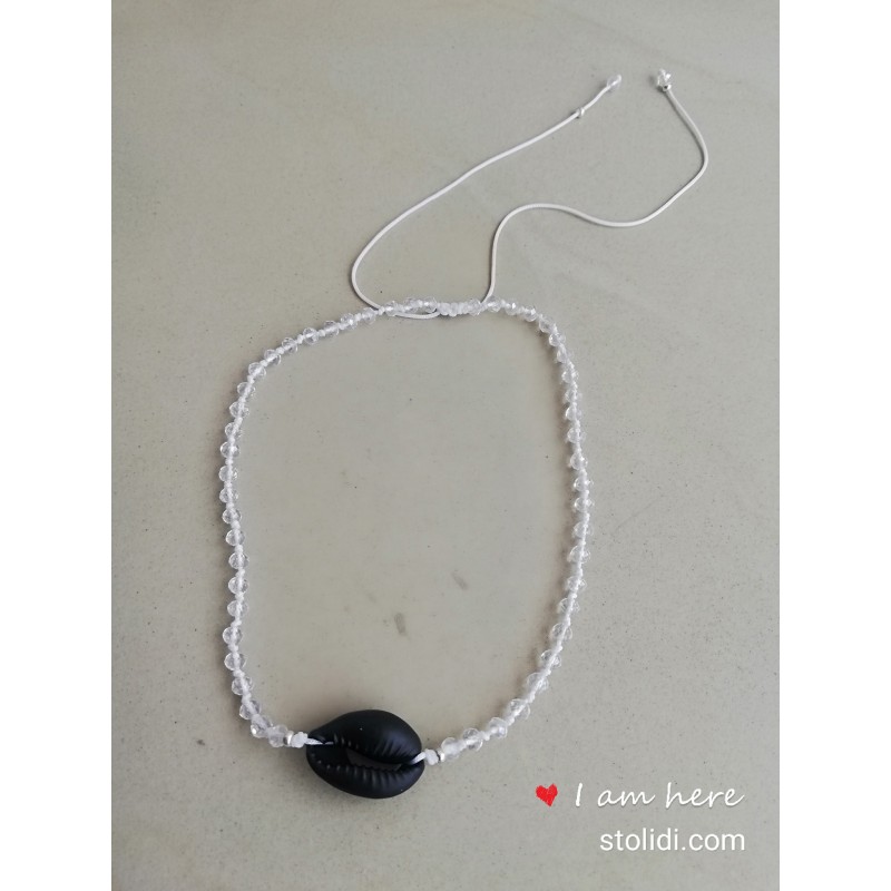 Τσόκερ για το λαιμό με διάφανο κρύσταλλο και μαύρο κοχύλι
