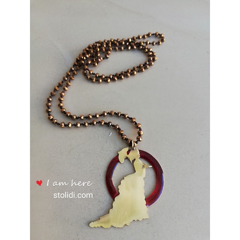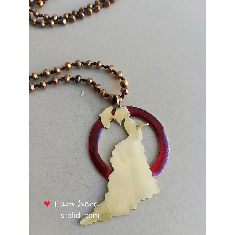 Χειροποίητο κολιέ μενταγιόν με μπρονζέ κρύσταλλα και στοιχείο από ορείχαλκο
