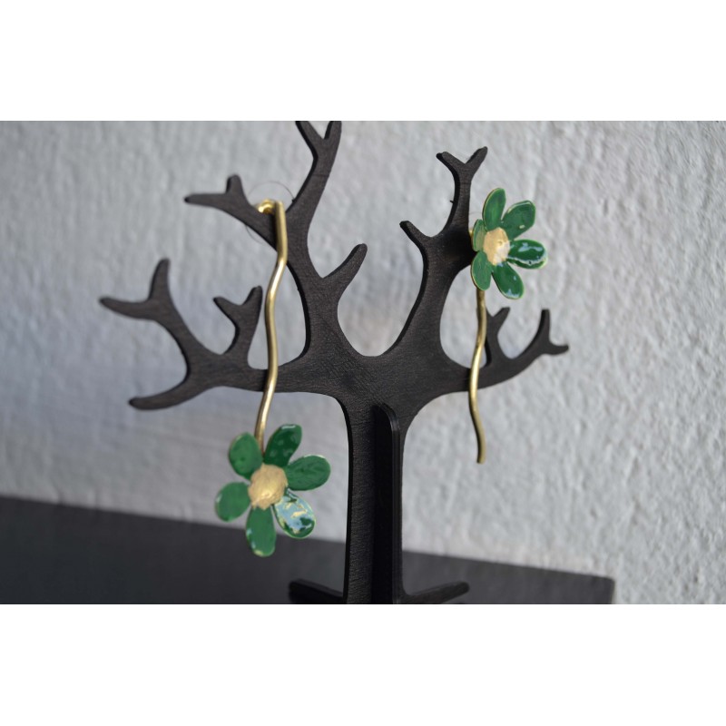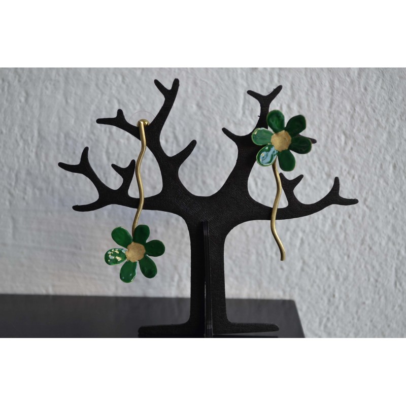 Χειροποίητα σκουλαρίκια μαργαρίτες από ορείχαλκο σε πράσινο σμαραγδί χρώμα