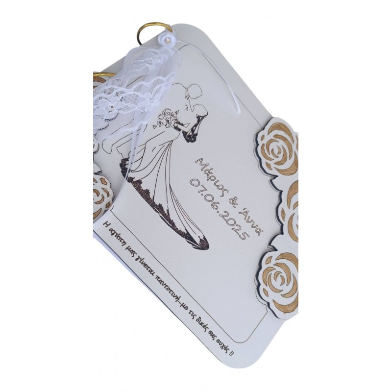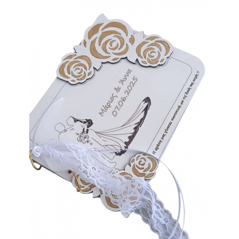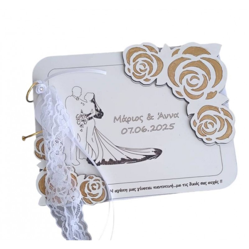 «Κρατάμε για πάντα τις ευχές σας…Ένα ξεχωριστό ευχολόγιο γάμου, φτιαγμένο με πολλή αγάπη και προσωπικές λεπτομέρειες.Στο κάτω μέρος, είναι χαραγμένη η ευχή:“Η αγάπη μας γίνεται παντοτινή… με τις δικές σας ευχές!!”Για να γίνει η αγάπη σας… αξέχαστη!»Στείλε μας μήνυμα για τα δικά σας στοιχείαΔιάσταση 25Χ18 εκ