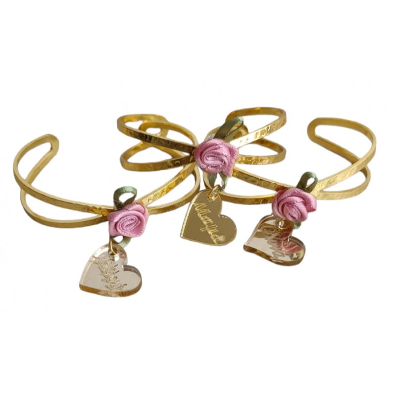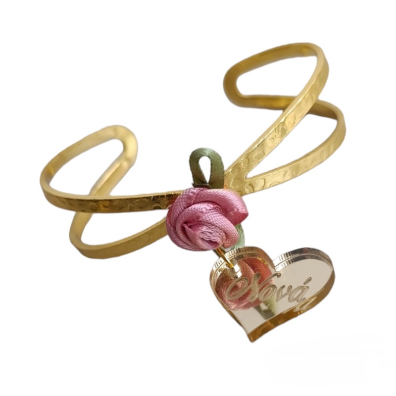 Χειροπέδες σε χρυσό χρώμα με τριαντάφυλλο και καρδιά απο plexiglass που μπορείς να γράψεις ό,τι θέλεις