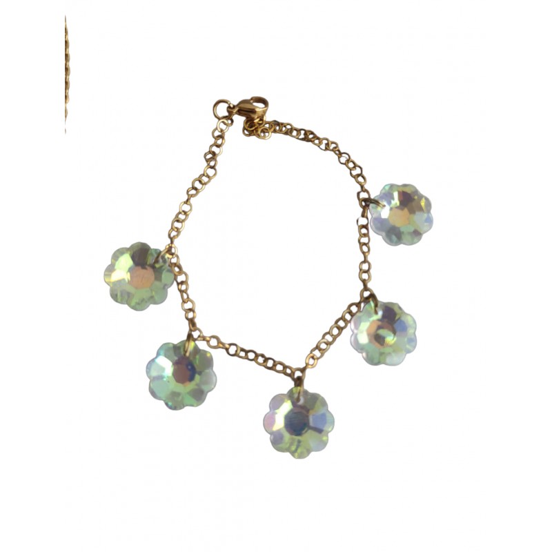 Βραχιόλι με ατσάλινη αλυσίδα και κρυστάλλινο λουλούδι