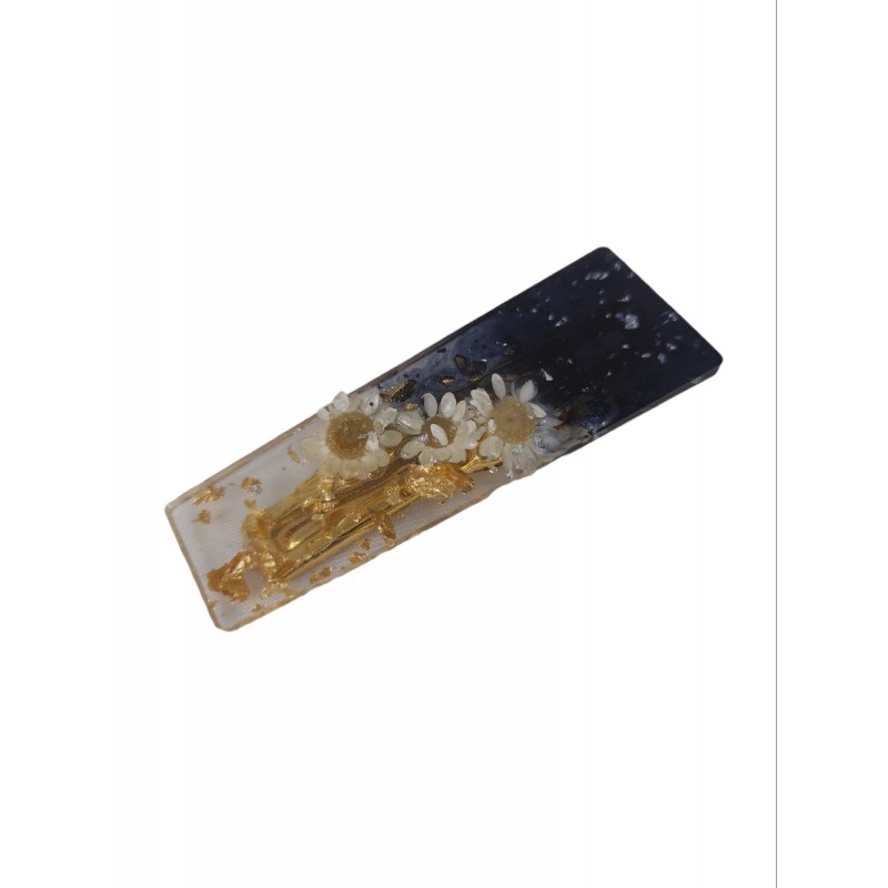Χειροποίητα κοκαλάκια κλιψ για τα μαλλιά με φύλλα χρυσού , αληθινά αποξηραμένα λουλούδια και μαύρο σμάλτο