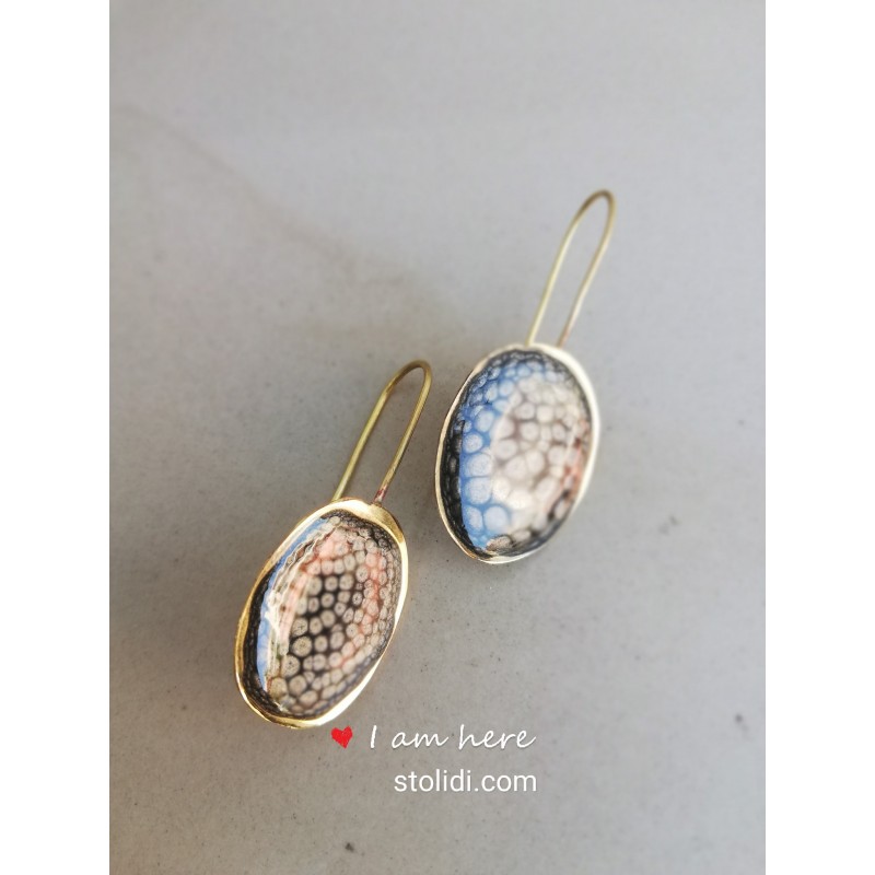 Χειροποίητα σκουλαρίκια από ορείχαλκο σε χρώμα γκρι με χρυσό