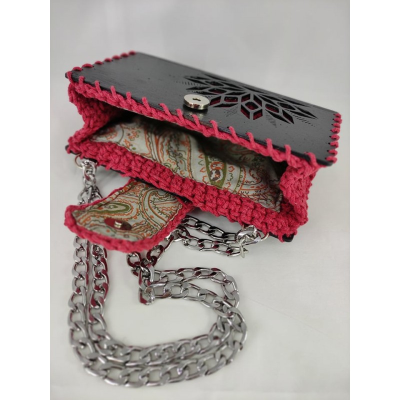 100% χειροποίητο τσαντάκι από ξύλο και νήμα