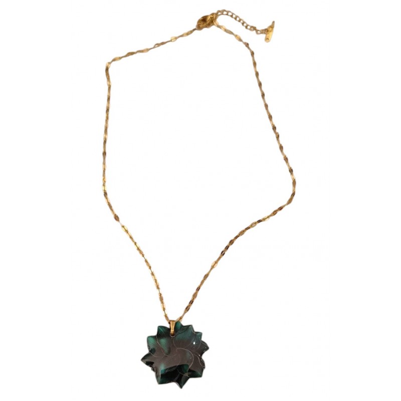 Χειροποίητο κολιέ μου λουλούδι σε πράσινο σμαραγδί χρώμα και χρυσή ατσάλινη αλυσίδα
