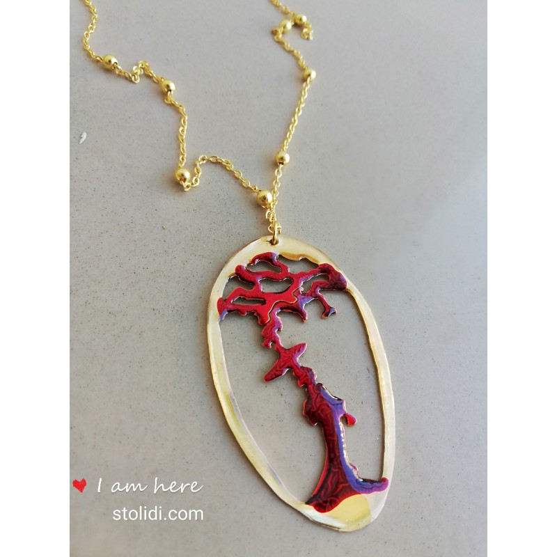 Χειροποίητο κολιέ με ατσάλινη αλυσίδα σε χρυσό χρώμα