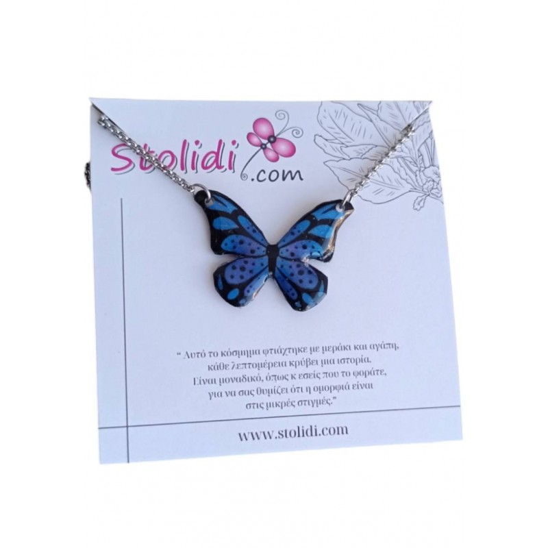 Ετικέτες: Ατσάλινη ασημένια αλυσίδα 42 εκ Διάσταση πεταλούδας 3.5Χ2.5 εκ Η πεταλούδα είναι ένα από τα πιο όμορφα σύμβολα. Αντιπροσωπεύει την αλλαγή, την εξέλιξη, την ελευθερία. Σκεφτείτε πόσο μαγική είναι η μεταμόρφωσή της: από μια μικρή κάμπια, κλείνεται στο κουκούλι της και μετά από λίγο καιρό, μεταμορφώνεται σε κάτι υπέροχο. Είναι μια υπενθύμιση ότι κάθε αλλαγή μπορεί να μας οδηγήσει σε κάτι ακόμα καλύτερο. Γι’ αυτό και κάθε φορά που φοράμε μια πεταλούδα, ίσως μας θυμίζει τη δική μας προσωπική εξέλιξη