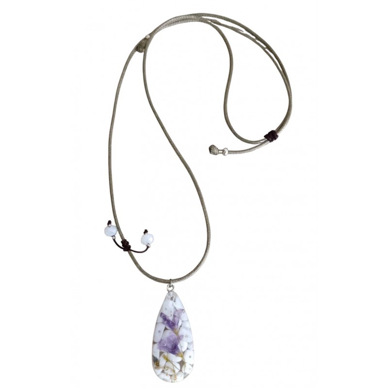 Όταν η λοβέλια συναντά τον λευκό χαουλίτη, γεννιέται ένα μενταγιόν που μιλάει για καθαρότητα, ηρεμία και ρομαντισμό.