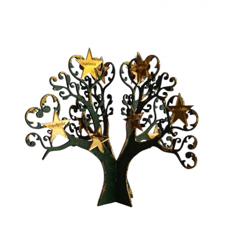 Ετικέτες: Χριστουγεννιάτικο γούρι δέντρο με ευχές από χρυσό plexiglass "Όπως το δέντρο απλώνει βαθιές και δυνατές ρίζες στη γη, έτσι να ριζώσουν στην ζωή σου οι ευχές αυτές, και να ανθίζουν για πάντα." Το παραλαμβάνεται μέσα σε κούτι συσκευασία δώρου Διάσταση δέντρου 3D 24X19 cm