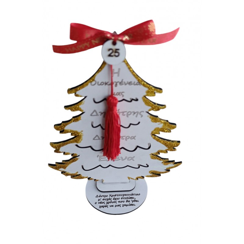Ετικέτες: Χριστουγεννιάτικο δέντρο με τα μέλη της οικογένειας σου στην βάση έχει χαραγμένη ευχή που μπορείς να την αλλάξεις Στείλε μας μήνυμα για τα μέλη της οικογένειας σου Διάσταση 21Χ16 εκ