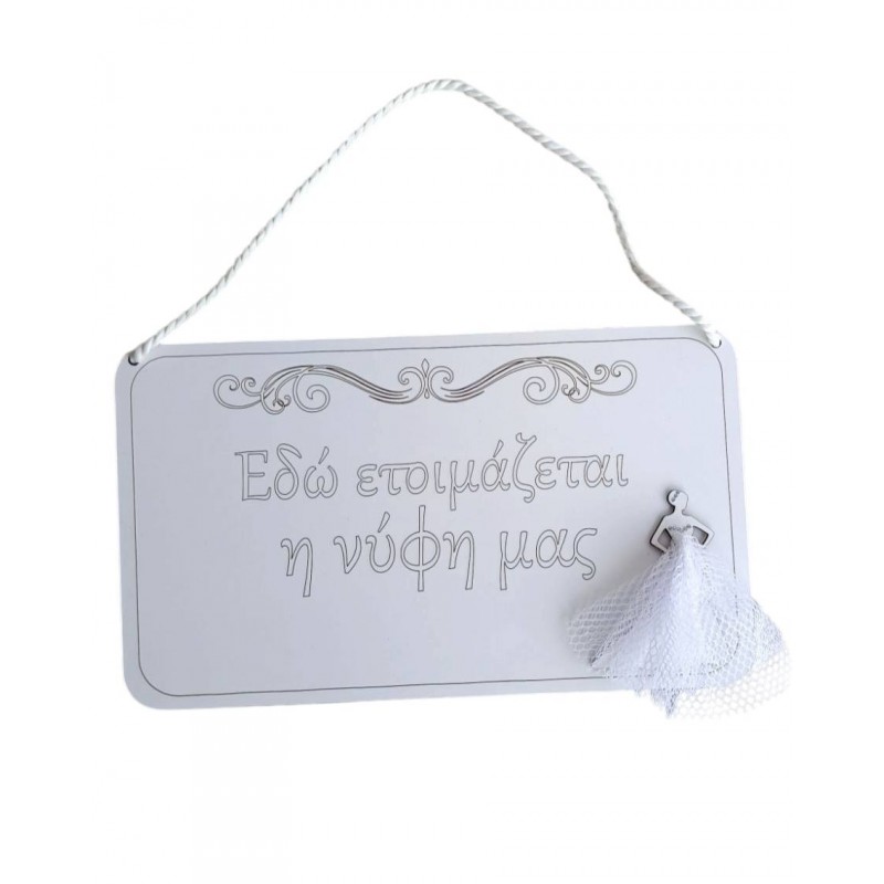 Ξύλινο Διακοσμητικό Γάμου – “Εδώ ετοιμάζεται η νύφη μας”