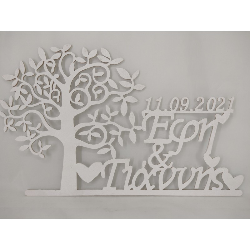 Ξύλινο διακοσμητικό με το δέντρο της ζωής, την ημερομηνία του  γάμου και τα ονόματα